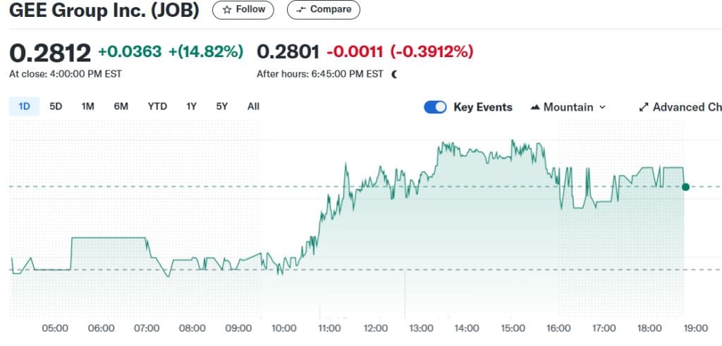 We see an average high of 5.3 – which is fantastic, and when we search the ticker, we see low stock price. Even better – a volatile penny stock. And this is what happened today: Plus 20% return!