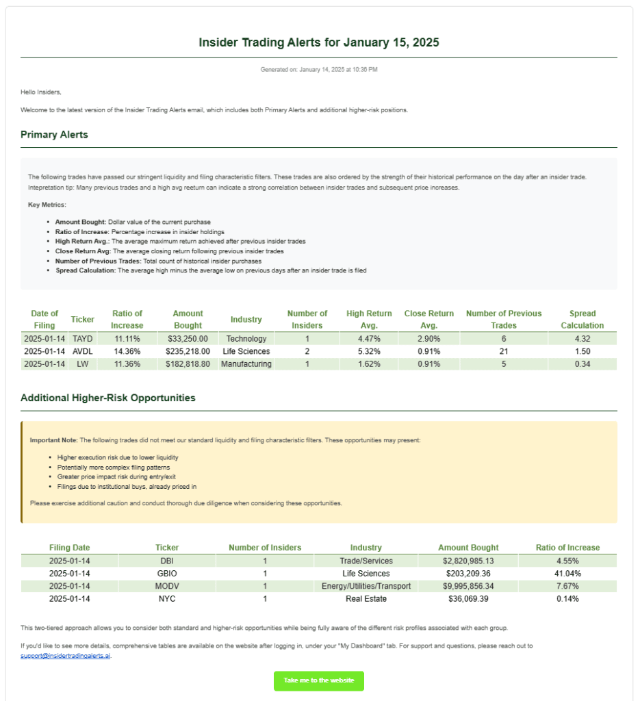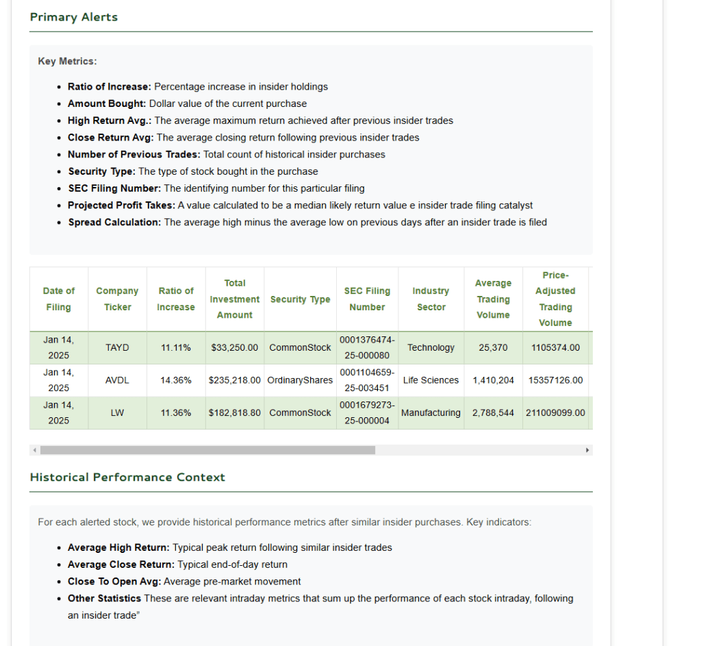 I also want to note, on the website ( https://www.insidertradingalerts.ai/ ) you are able to see a post that looks like the below: More details, and exact performance for each day