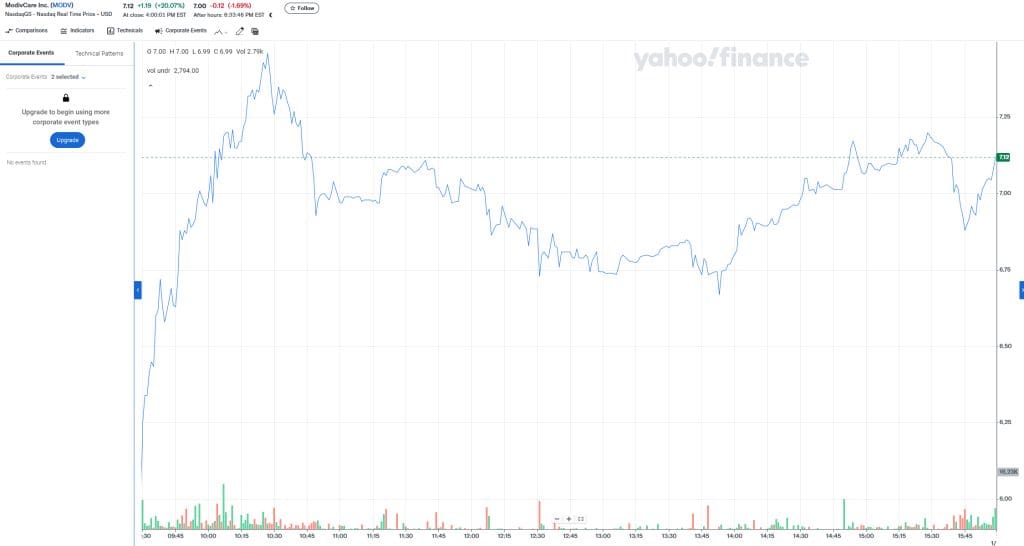 Two stocks – MODV and DBI up 20% and 16% respectively!